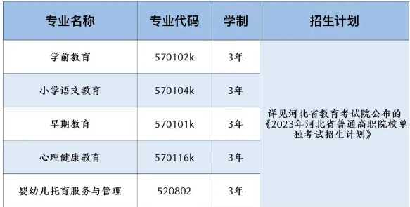 人才培养。学校现有在校生6714人。面向河北、安徽、陕西、山西、甘肃、贵州、四川、重庆、广西、云南等10个省(市、自治区)招生,生源质量优良,各专业招生录取分数位于省内同类院校前列。学校坚持“合格+特长”的技能培养目标,围绕夯实知识掌握、强化技能训练、规范教育实践、注重素质塑造,积极构建赛教融合人才培养模式。学生近三年参加各类专业技能大赛获得国家级和省、市级以上奖励累计28项,2022年音乐教育专业荣获河北省技能大赛一等奖。2022年教师资格证考试通过率达80.6%。